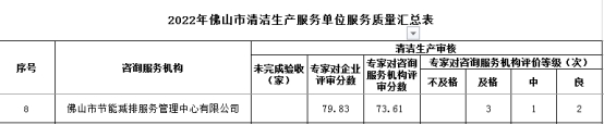 日前,佛山市工業(yè)和信息化局、佛山市生態(tài)環(huán)境局發(fā)布了《佛山市2023年度應實施清潔生產(chǎn)審核企業(yè)名單》和《2022年佛山市開展清潔生產(chǎn)審核的咨詢服務機構的服務質(zhì)量考評結果》,節(jié)能減排中心獲得由專家打出的質(zhì)量服務分數(shù)73.61分,在參與考核的59個清潔生產(chǎn)服務單位中排名第三。