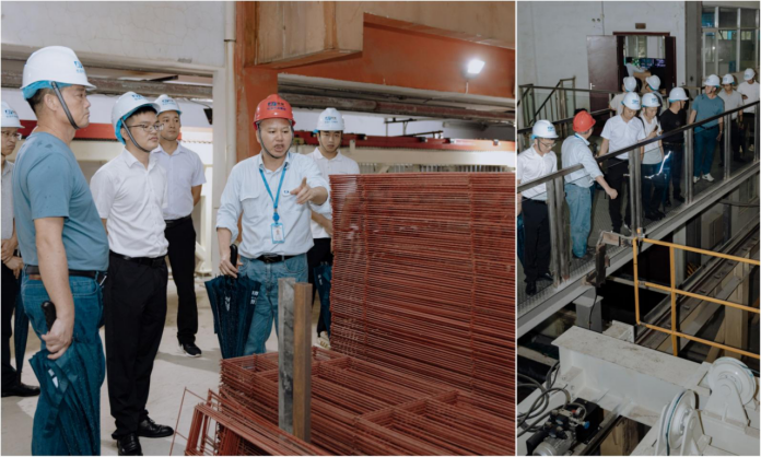 佛山市恒益環(huán)保建材有限公司鄧大進(jìn)總工程師在ALC板材生產(chǎn)現(xiàn)場作介紹